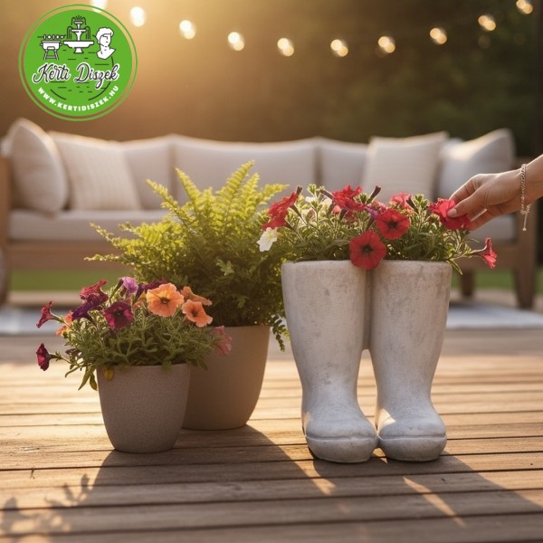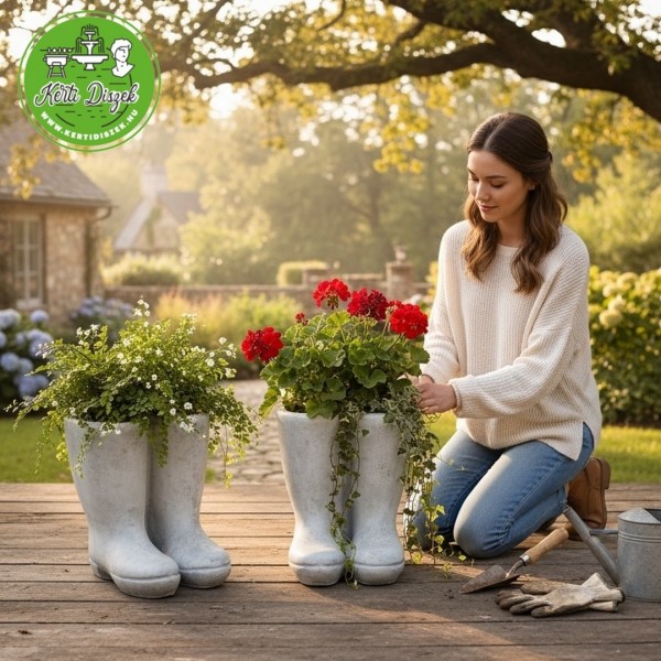 Unod már a sablonos kaspókat? Itt az idő, hogy egy kis humort és kreativitást csempéssz a kertedbe! Ez a gumicsizma alakú virágtartó pár nem csak különleges formájával hódít, hanem azzal is, hogy mosolyt csal az arcokra. Képzeld el, ahogy a csizmákból színes virágok „nőnek ki”, mintha csak egy tavaszi séta után gyökeret vertek volna. Leanderek, futónövények, muskátlik – bármit ültetsz bele, még a növények is boldogabbnak tűnnek!