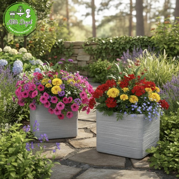 Minimál stílusú beton kocka kaspóérre és kertbe