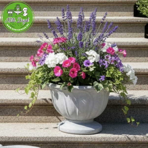 Klasszikus Elegancia fagyálló kültéri kaspó tökéletes választás, ha időtálló stílust és prémium minőséget keresel. Masszív kőhatású kialakítása harmonikusan illeszkedik történelmi épületek, kertek vagy modern teraszok hangulatához. A kaspó gazdag virágkompozíciókkal életre kel, miközben ellenáll az időjárás viszontagságainak. Elegancia, tartósság és karakter egyetlen darabban. Letisztult formája és elegáns megjelenése révén harmonikusan illeszkedik modern és klasszikus kertstílusokhoz is. A virágtartóban elhelyezett színes virágkompozíciók kiemelik a hely hangulatát, és vonzzák a tekinteteket.