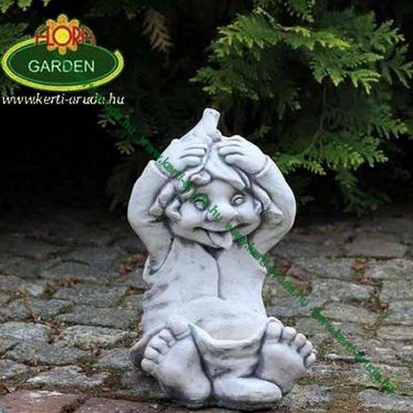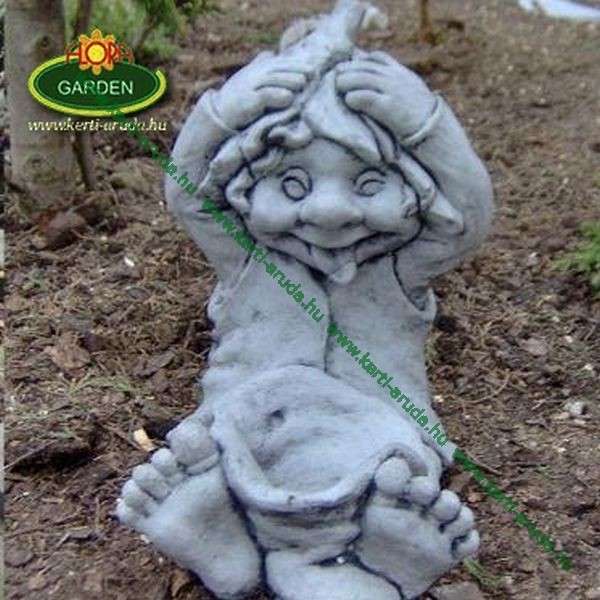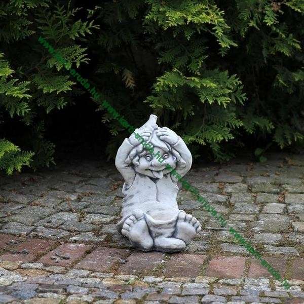 A kerti törpe koldus figura aranyos és kedves alakja megmosolyogtatja a kertünkbe látogatókat. Termékeink télen is díszíti kertünket mivel műkőből készült, ezért teljes mértékben ellenáll az idő viszontagságainak, fagyálló.