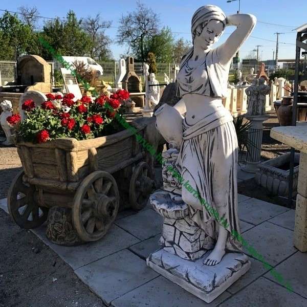 Extra nagyméretű látványos újdonságunk. A korsós nő szobor, csobogóként és kerti szoborként is használható legújabb termékünk. Méretéből adódóan igen dekoratív. Egyaránt ajánljuk kertbe, közterületekre, parkokba és vendéglátóhelyekre. A szobor megvilágítva és egy hozzá illő talapzaton a zöld környezet izgalmas középpontjává válhat.