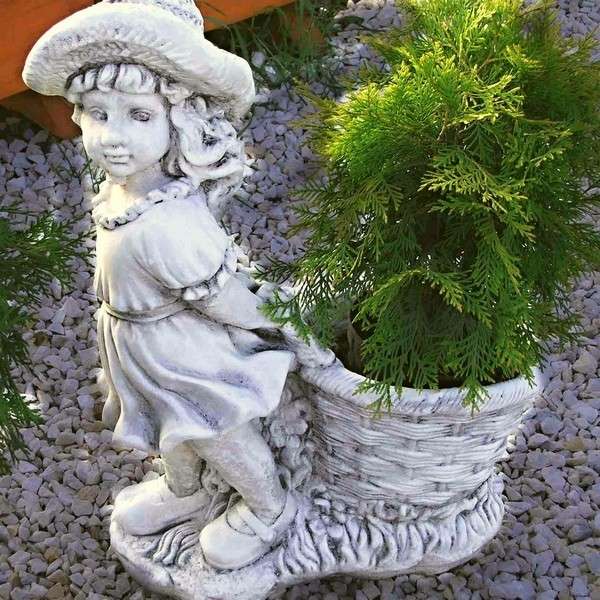 Mi mindig megpróbálunk különleges funkciót hozzáadni a kültéri termékeikhez, így ez a virágtartó aranyos kerti dekorációként is funkcionál. Termékünk a kertjét télen is díszíti. Kerti dísztárgyaink minőségi kő zúzalékból készülnek, az időjárás viszontagságainak teljes mértékben ellenállnak. A kerti díszek kedves alakja soha nem megy ki a divatból, mivel mindig lesznek emberek, akiknek ez a kis kedves lány alak örömet szerez.
