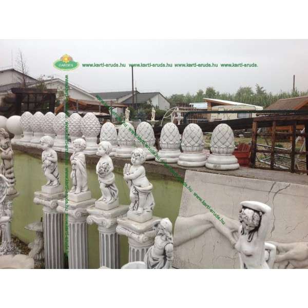 Nagyon szép oszlop dísz. Házak, kapuk, kerítések, korlátok tetejére helyezve igen dekoratív megjelenést kölcsönöz környezetében. A kő, mint természetes anyag, jól illeszkedik a növényekhez és a zöld környezetbe. Termékeink minőségi kő zúzalékból készülnek, az időjárás viszontagságainak teljes mértékben ellenállnak és fagyállóak.