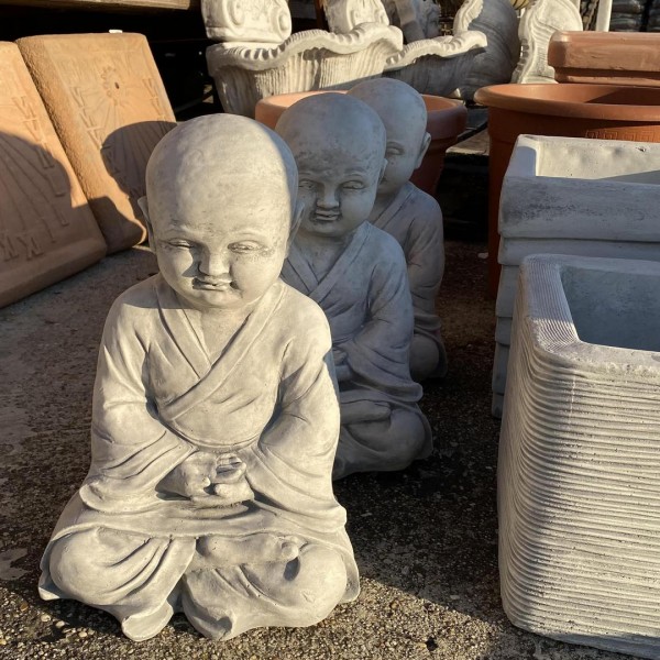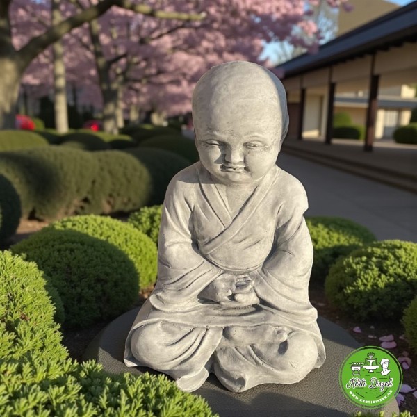 Ez a bájos kőszobor egy Buddhista szerzetest ábrázol, aki csukott szemmel, összekulcsolt kézzel ül nyugodt pózban. A figura keleti vallási hagyományokat idéz, különösen a buddhista szerzetesek világát, ahol a belső béke, a csend és a tisztaság kiemelt értékek. Anyaga időtálló kő, amely ellenáll az időjárás viszontagságainak, így kültéri használatra is alkalmas. A szobor nemcsak dekoráció, hanem egy spirituális szobor is, amely emeli a tér energiáját.