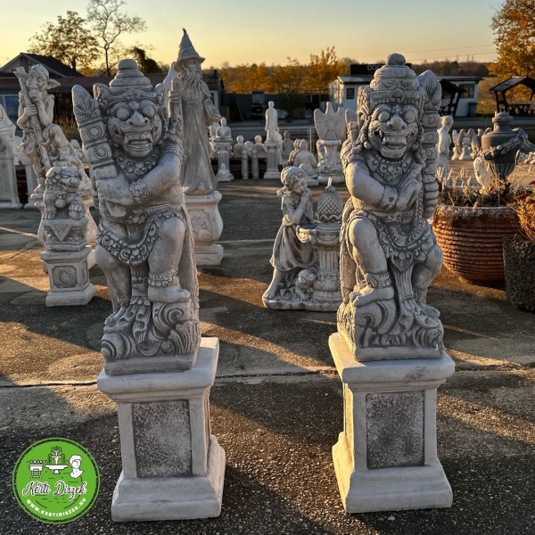 Ez a lenyűgöző Dvarapala szobor a hindu és balinéz templomok őrző alakjainak másolata. A figura harcias arckifejezéssel, díszes fejdísszel és fegyverrel jelenik meg, hogy elűzze a negatív energiákat és megvédje a szent teret. A részletgazdag faragás és a természetes kő időtálló eleganciát biztosít. A szobor kültéri és beltéri használatra is alkalmas, ideális kapubejárathoz, kertbe, teraszra vagy meditációs térbe. Párosával elhelyezve jobb és balos változatban különösen hatásos spirituális védelmet nyújt. A szobor jobb és balos változatban is elérhető, így szimmetrikusan elhelyezhető a bejárat két oldalán. Fontos: Rendeléskor kérjük, a megjegyzés rovatban jelezze, hogy jobbos vagy balos szobrot kér! A feltüntetett ár 1db szoborra értendő.