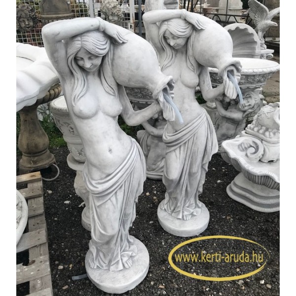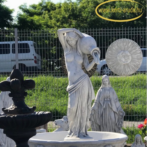 Az új nő szobrunk, már a modernebb, letisztultabb, kertek világába terveztük. Különlegessége hogy nem csak szoborként használható. Kerti tóba vagy szökőkútra helyezhető és keringető szivattyúval tudja a korsójából önteni a vizet. Termékeink minőségi kő zúzalékból készülnek, az időjárás viszontagságainak teljes mértékben ellenállnak, fagyállók. Méretekért kattintson a bővebb leírás gombra!