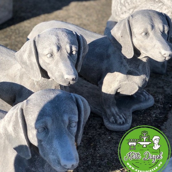Az új tacskó kutya szobor kőből készült ezért jól tűri az idő viszontagságait. Télen, nyáron díszíti a kertet, megmosolyogtató aranyos szobor. Méretekért kattintson a bővebb leírás gombra!